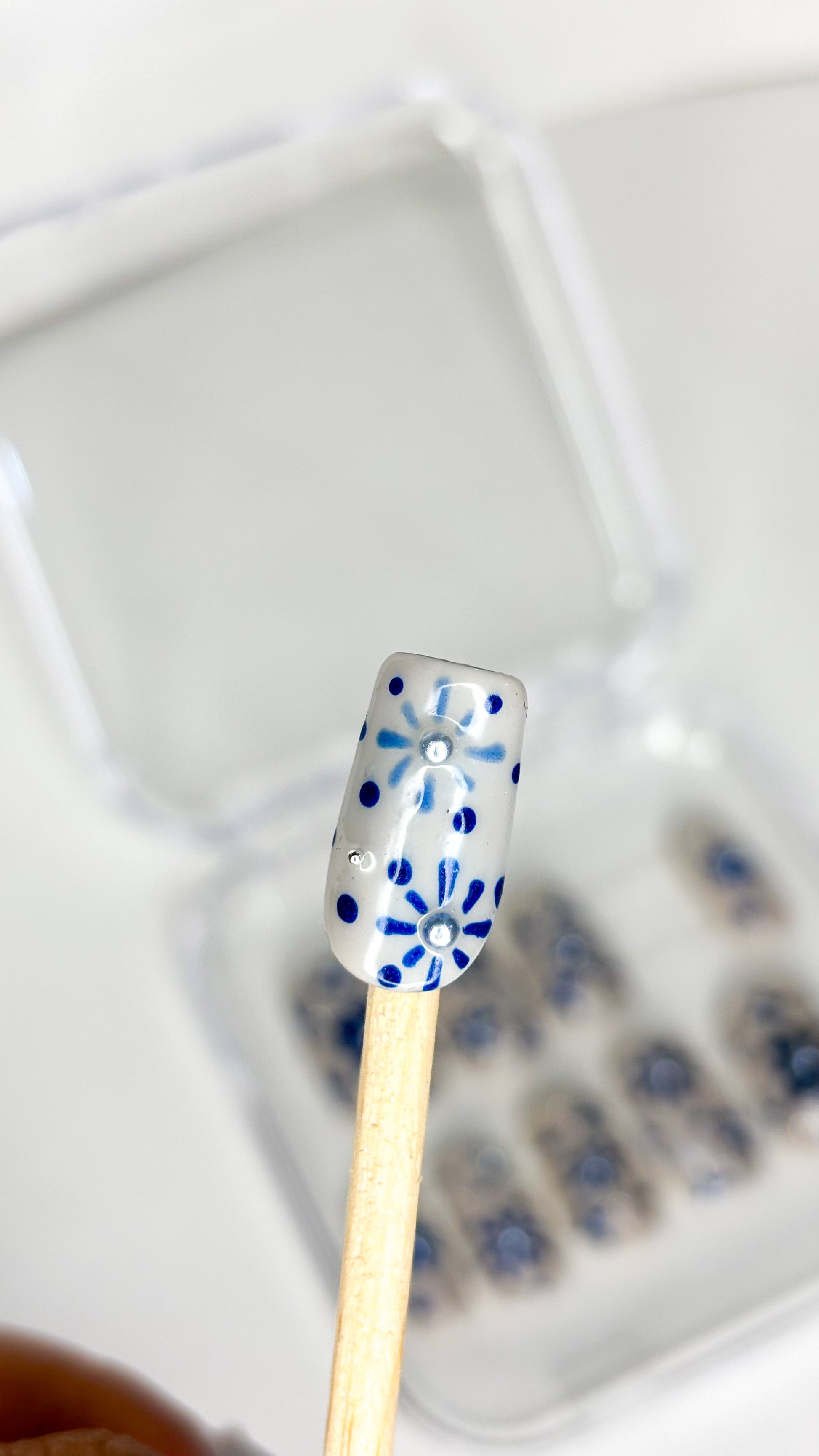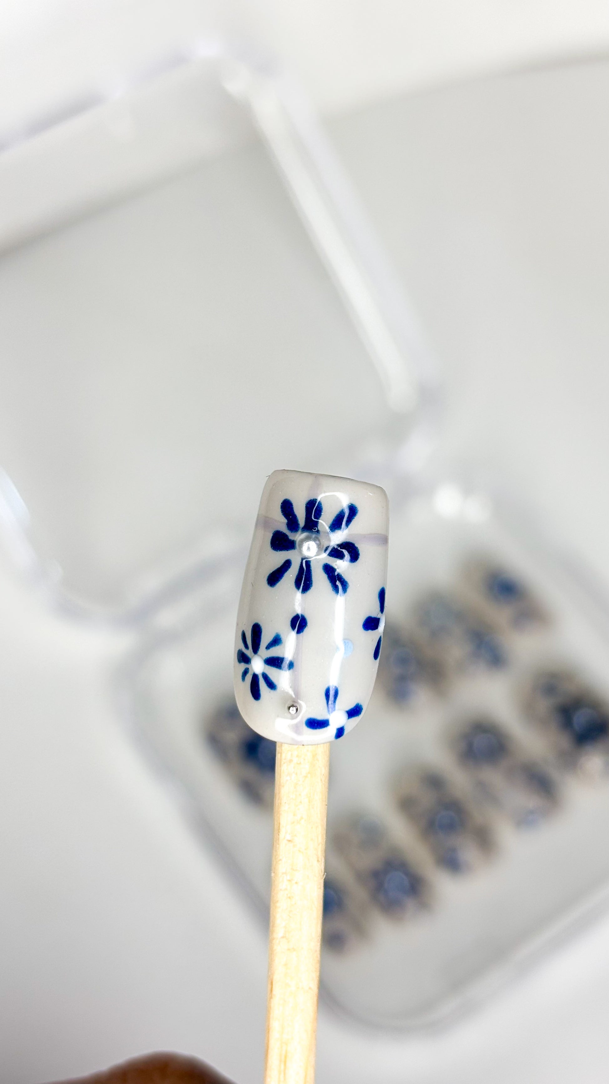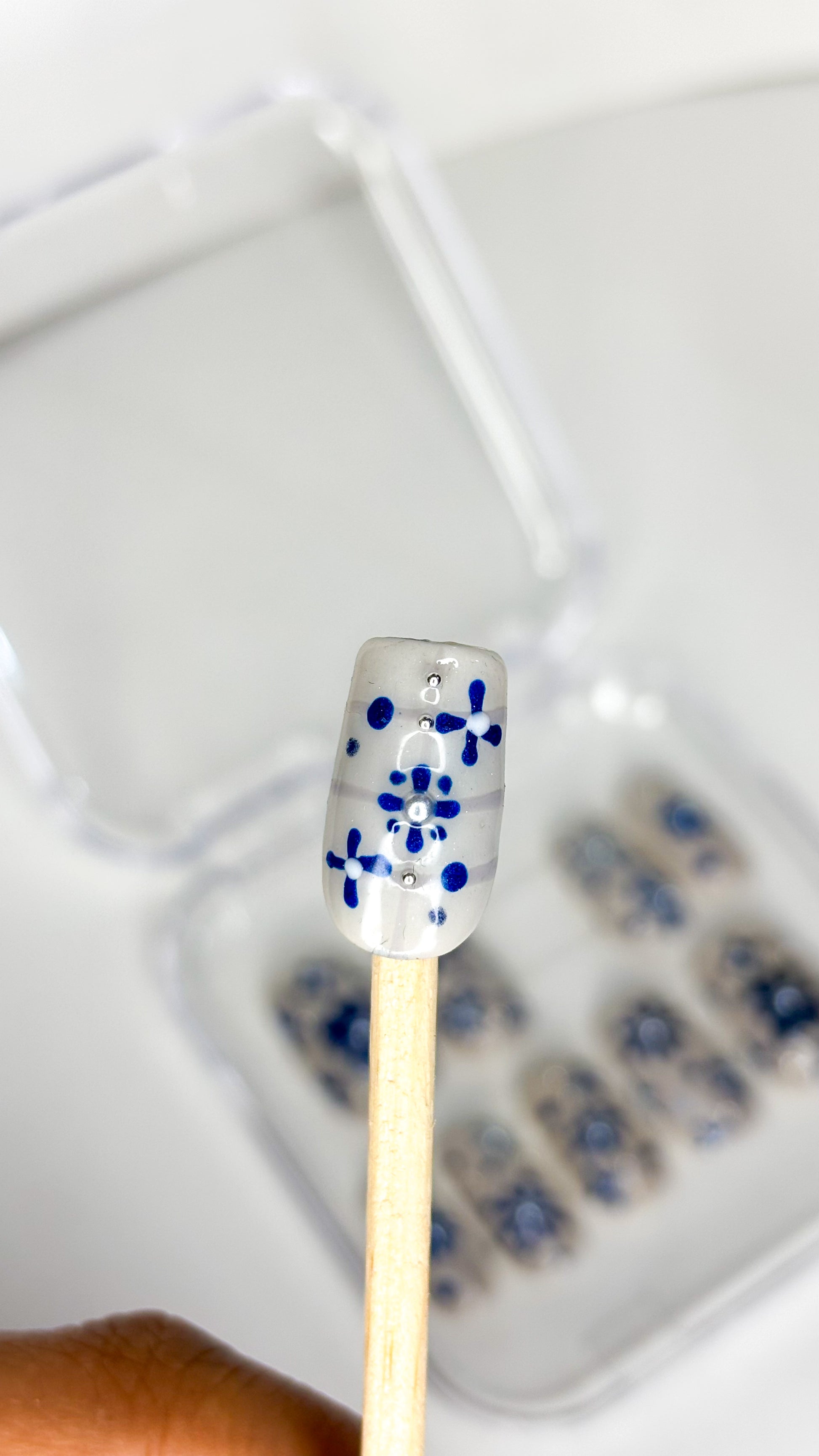 Indigo Bloom – XS Hand-Painted Press-On Nails